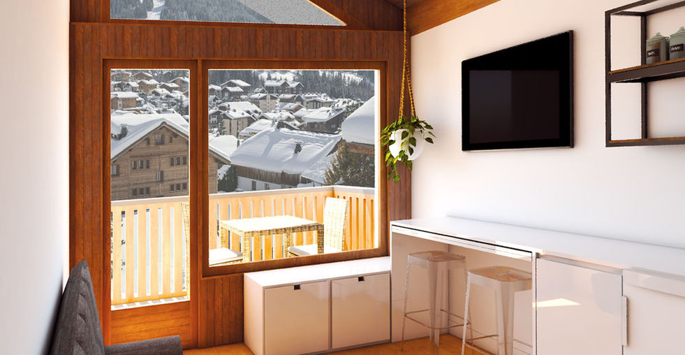 Dans la station des Gets, la demande était d'améliorer l'esthétique et la fonctionnalité d'un petit studio.