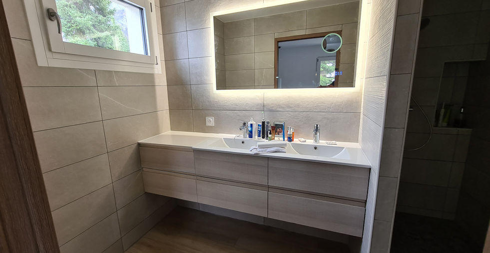 Rénovation d'une maison sur les hauteurs du Salève, avec vue sur le Jet d'eau de Genève.