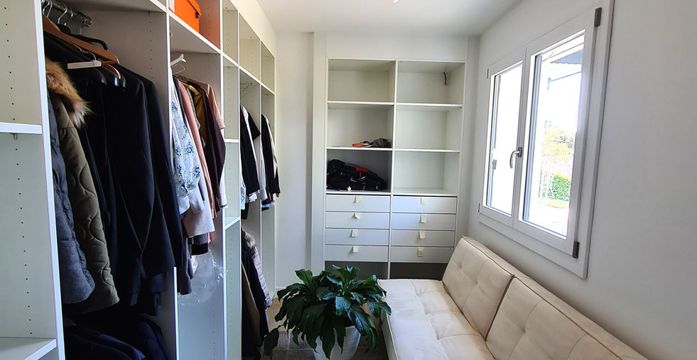L'ensemble des pièces de la maison se déclinent dans un camaïeu de beige et de blanc, mettant ainsi en valeur la luminosité naturelle des lieux. Le bois, par touche légère, accentue l'ambiance chaleureuse et conviviale de la maison.